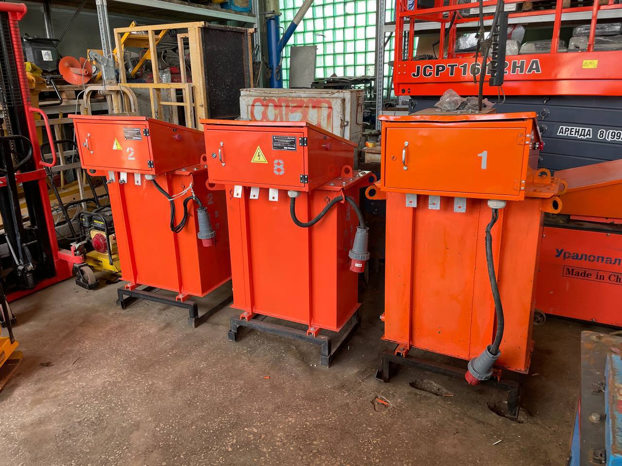 В наличии — трансформаторы для прогрева бетона мощностью от 10 кВт до 80 кВт. Парк — более 200 единиц, поэтому оборудование обычно можно подобрать под требуемую мощность и сроки.