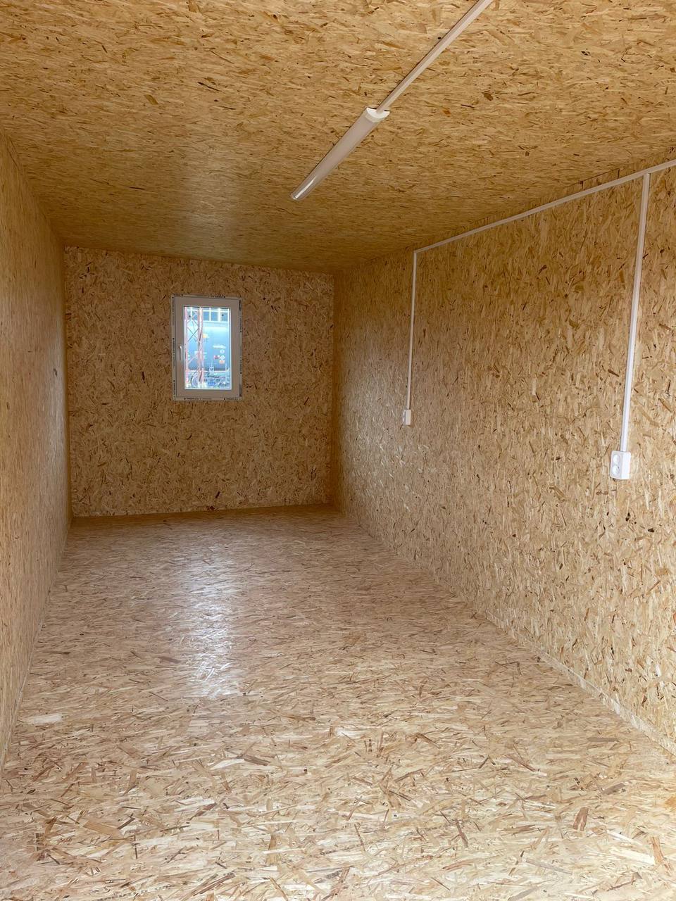 Внутренняя отделка бытовки выполнена из прочных материалов, таких как металл, влагостойкое ЛДСП, обеспечивая легкость ухода.